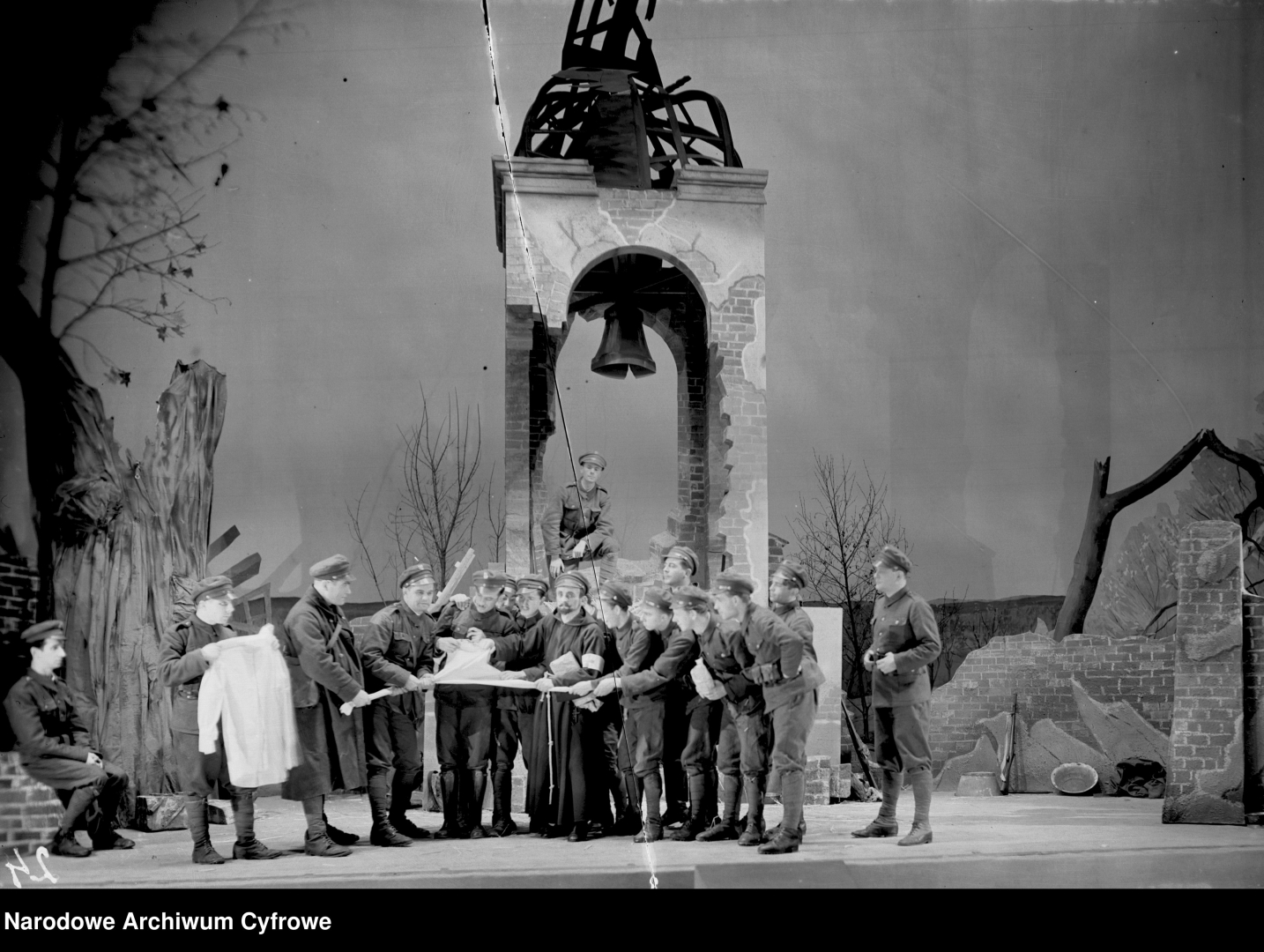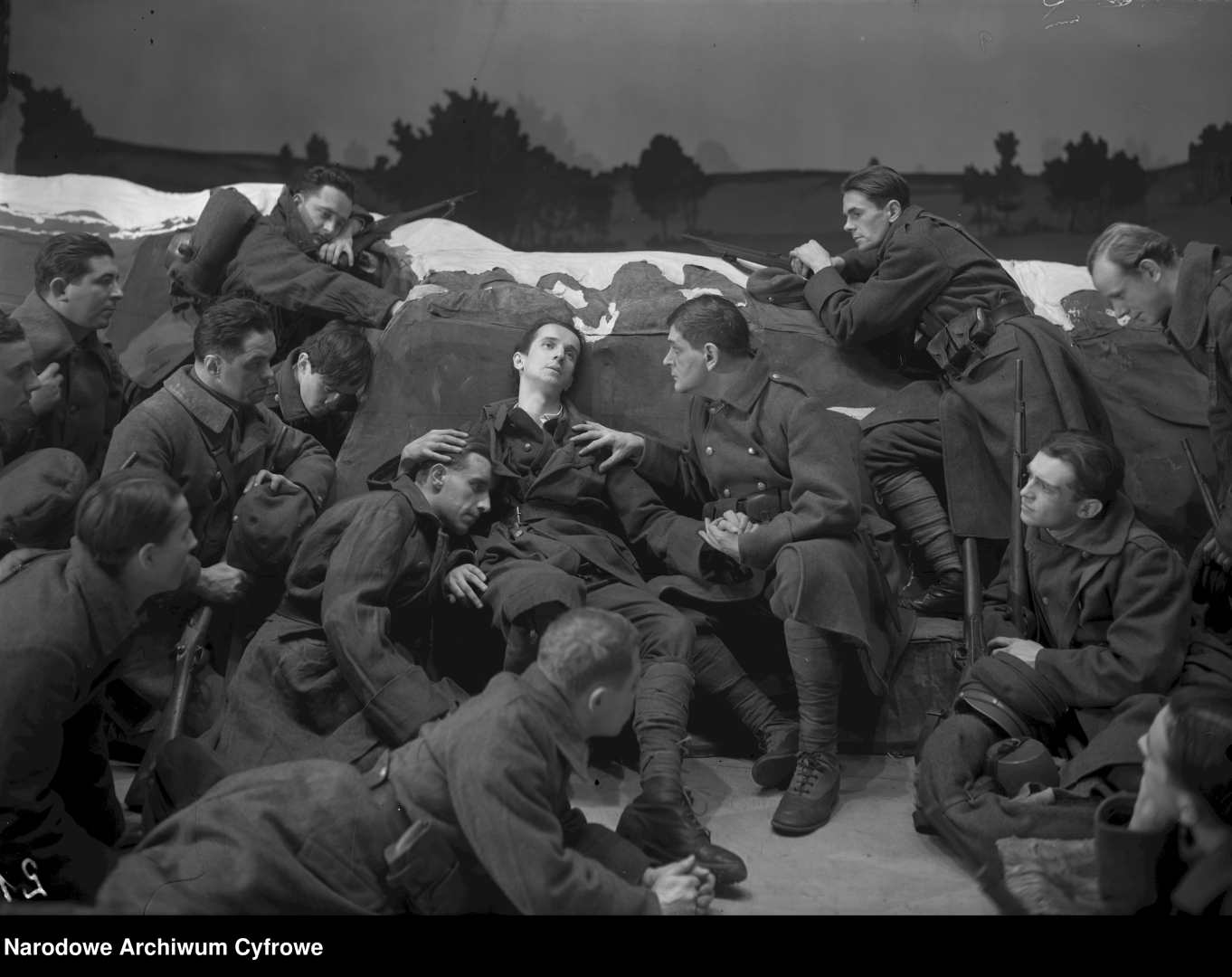 Czy sztuka Nowakowskiego rzeczywiście daje się wpisać w ów nakreślony przez Pochmarskiego program „Teatru Polski żywej”? Jak pogodzić te wzniosłe idee z „reportażowością”, desakralizacją i deheroizacją wojny, widoczną przede wszystkim w obrazie III, w którym przeziębieni bohaterowie tkwią w Wigilię 1914 roku w okopie pod Łowczówkiem, niedaleko Tarnowa, i opowiadają sobie nawzajem o krwawych szturmach. To właśnie w tej scenie umierają z powodu odniesionych ran dwaj główni bohaterowie, a kończy się ona przejmującym momentem, gdy do legionistów, śpiewających kolędę, dołączają głosy Polaków z przeciwnej strony, walczących przeciw nim w rosyjskich mundurach. W ten sposób Nowakowski nadał bezsensownej śmierci legionisty Betona (który zmarł postrzelony podczas wyprawy po choinkę) wymiar tragiczny i wpisał ją w szerszą perspektywę polskiego losu.