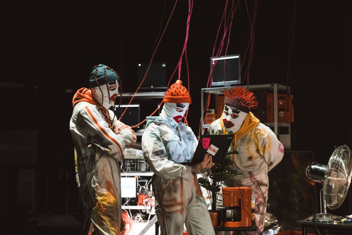 Ciekawe, że teatr w swej nowoczesnej, tak zwanej postdramatycznej i performatywnej odmianie, choć zmienił styl i estetykę, nie porzucił tych dawnych, wspólnotowych skłonności. Wymownego przykładu dostarcza spektakl Spy girls w reżyserii Magdy Szpecht (Vaba Lava Narva Theatre, 2024, pokaz na festiwalu Boska Komedia). Scena zagracona jest nowoczesnym sprzętem, najważniejsze sprawy rozgrywają się na centralnie umieszczonym ekranie, a tak naprawdę – w internecie. Zamiast klasycznej fabuły widzimy wytwarzanie nowej odmiany fikcji, świata postmedialnych symulakrów: w kluczowej scenie unaocznia się tu akt stworzenia fejkowej tożsamości. Zamaskowani performerzy-hakerzy nie grają postaci, dokonują raczej aktu prezentacji swojej prywatnej, codziennej wojny z Rosją. Przybierając cyfrową tożsamość owładniętych imperialną propagandą rosyjskich dziewcząt, przejmują zadania białego wywiadu i wyciągają od wojaków istotne frontowe informacje. Oglądamy profile, prywatne zdjęcia i dane autentycznych rosyjskich żołnierzy, zwykłych – zdawałoby się – chłopaków, którzy z tęsknoty za normalnością, ze strachu przed śmiercią, łakną kontaktu z drugim człowiekiem. Choćby cyfrowego. Niedyskrecja w chwilach rozluźnienia może kosztować życie. W pewnym momencie stajemy się świadkami rozmowy „spy girl” z jednym z nich. Ale trudno dostrzec tu choćby ślad chęci wywoływania współczucia, postrzegania tych szeregowców, mięsa armatniego, jako ofiar. Nie ma tu żadnych niedomówień, półcieni. To jest jednocześnie i spektakl, i akt wojny.