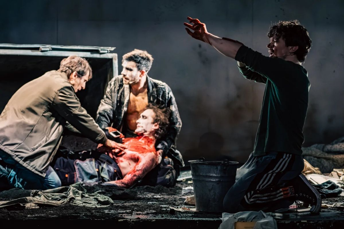 W Termopilach, dzięki kamerze drona zaglądamy księciu Pepi prosto w twarz, a spektakl jest opowieścią z samego środka polskiego doświadczenia, nie ma nic wspólnego z frontami tej wojny. Oczywiście, i Klata, i Englert – w nałożonym na inscenizowane dramaty planie metanarracji – mówią to samo, co słyszymy ze wszystkich stron: Rosja stoi już niemal u naszych granic, za chwilę może tu być. Obaj panowie dyrektorzy poszukują więc sposobu, aby nami wstrząsnąć obrazami śmierci. Teatralnej śmierci. A jak można zagłuszyć ewentualne wyrzuty sumienia z powodu miękkości pluszu fotela, z którego je obserwujemy? Owacjami na stojąco? Wpłatą na którąś ze zrzutek?