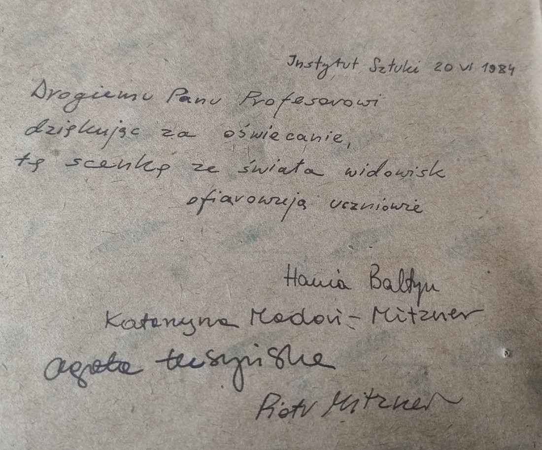 Piotr Mitzner zwrócił uwagę, że wśród podpisanych brak Marka Chimiaka, piątego uczestnika seminarium. Cała grupa to absolwenci pierwszego i drugiego rocznika Wydziału Wiedzy o Teatrze warszawskiej PWST. Ostatecznie pod opieką Raszewskiego doktoraty obronili Piotr Mitzner (Postać Tadeusza Kościuszki w teatrze polskim, 1985) i Agata Tuszyńska (Maria Wisnowska – monografia, 1986).