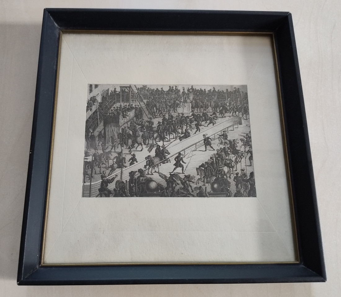 Wśród pamiątek po Profesorze przechowywanym w Instytucie Teatralnym znajduje się oprawna rycinka przedstawiająca widowiskową scenkę – rycerskie szranki. Dedykację na odwrocie podpisało czworo uczniów Zbigniewa Raszewskiego: Hanna Baltyn, Katarzyna Madoń-Mitzner, Agata Tuszyńska oraz Piotr Mitzner, któremu zawdzięczam informację, że rycina to prezent na zakończenie seminarium doktoranckiego w Instytucie Sztuki PAN.
