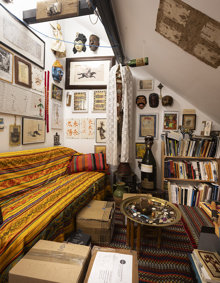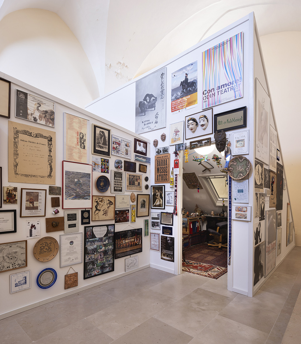 „Wchodzicie do mojej głowy” – mówi Barba do zaprzyjaźnionych teatrologów przed wejściem do sali, która jest jego biblioteką. Panuje tu chaos i bałagan. Na regałach piętrzą się książki, między stertami powtykane są afrykańskie maski, kosze, koraliki, kamienie, doniczki z kwiatami i słoiki z medalami i orderami, które Barba dostawał przy różnych artystycznych okazjach. Wyglądają jak preparaty medyczne. Brakuje wśród nich słoika z medalem, który Barba odebrał z rąk prorektora Uniwersytetu Warszawskiego, profesora Zygmunta Lalaka podczas ostatniej wizyty w Warszawie.